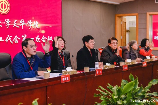 经过全体代表投票选举,王茜、包静波、朱博、吴国兴、周建文、徐娟、曹卫、答英娟、韩聪颖当选为第三届工会委员,赵科、徐振、戚春兰当选为第三届经费审查委员会委员。大会通过王晓兰、孙连荣、杨央、周丽婕、胡雅楠、夏智源、曹卫、谢京茹、戴沉雁为第三届工会女职工委员会委员。经过全体代表投票表决,通过了《天华学院工作报告》、《天华学院第二届工会委员会工作报告》和《关于天华学院转设工作方案的报告》。