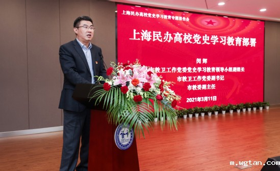 3月11日下午,上海民办高校党工委在我校晖华楼报告厅召开党史学习教育报告会,贯彻落实中央、市委和市教卫工作党委关于开展党史学习教育的部署要求,学习贯彻习近平总书记在党史学习教育动员大会上的重要讲话精神、给上海市新四军历史研究会百岁老战士们的重要回信精神。市教卫工作党委副书记、市教委副主任、市民办高校党工委书记闵辉对上海民办高校开展党史学习教育作部署,上海师范大学教授苏智良作《新四军与上海》专题报告。会议由我校党委书记陆建非主持。