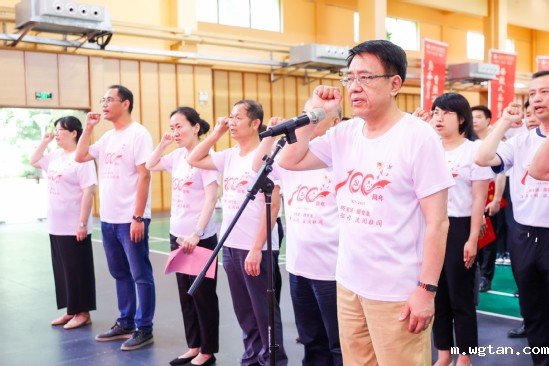 “我志愿加入中国共产党,拥护党的纲领,遵守党的章程,履行党员义务……随时准备为党和人民牺牲一切,永不叛党。”在党委书记陆建非的领誓下,学校新发展党员面向鲜红的中国共产党党旗进行了入党宣誓,老党员们也一同举起右拳,重温入党誓词,铿锵有力的誓言声响彻体育馆。