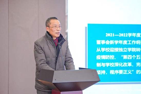 校长叶才福围绕学校重大项目申报、人才培养重点领域提升和教学保障重要条件改善三个方面,汇报了学校在一流本科专业申报、硕士授予单位培育建设、中外合作办学机构申报、新一轮教学成果奖申报、活力课堂巩固等12个子项目的主要工作,探讨了如何提升干部主动思考谋划能力、提升教师科研能力与成果、提高精细高效的管理水平等方面的问题,表示将坚持突出办学亮点,显化、固化、深化国际化与应用型师资特色,狠抓科研工作,为学校高质量发展贡献力量。