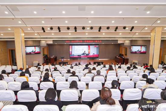 在过去的2021年,学校建设发展有序推进,学科专业捷报频传,各项工作开展得有声有色。会前,与会人员集中观看了上海民办高校干部和党员研修基地巡礼片、上海民办高校党建与思政工作研究中心巡礼片和2021年度上海市园长培训巡礼片展映,集中展示了学校在党建工作、品牌专业特色等方面的影响力与社会关注度。