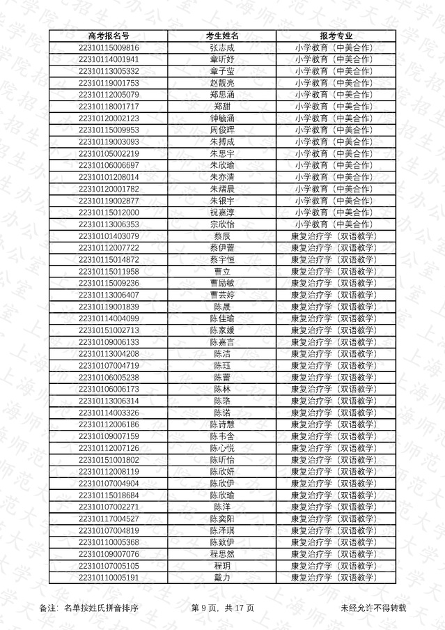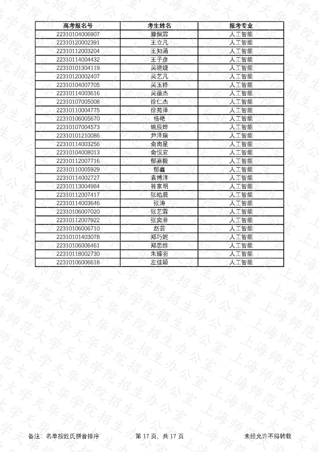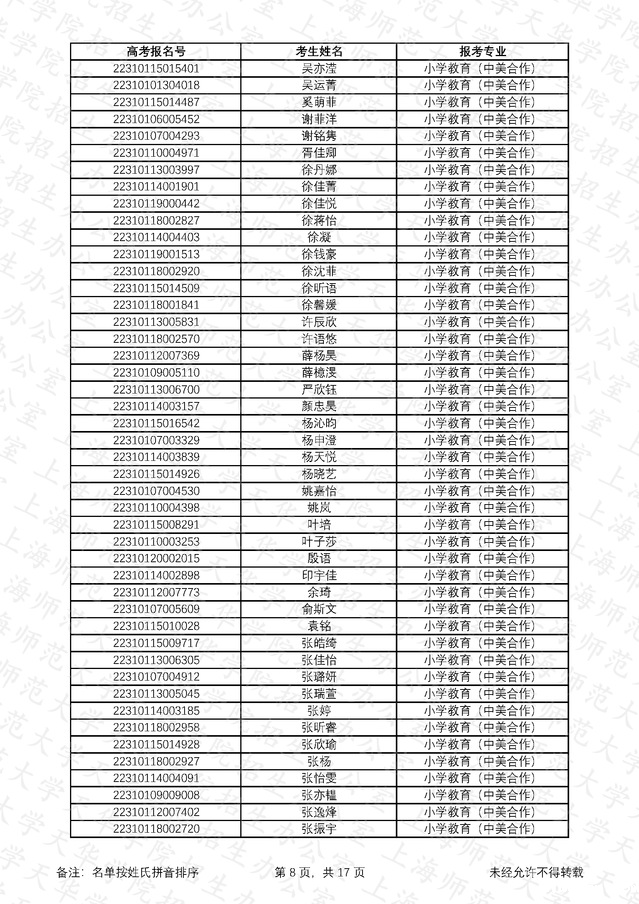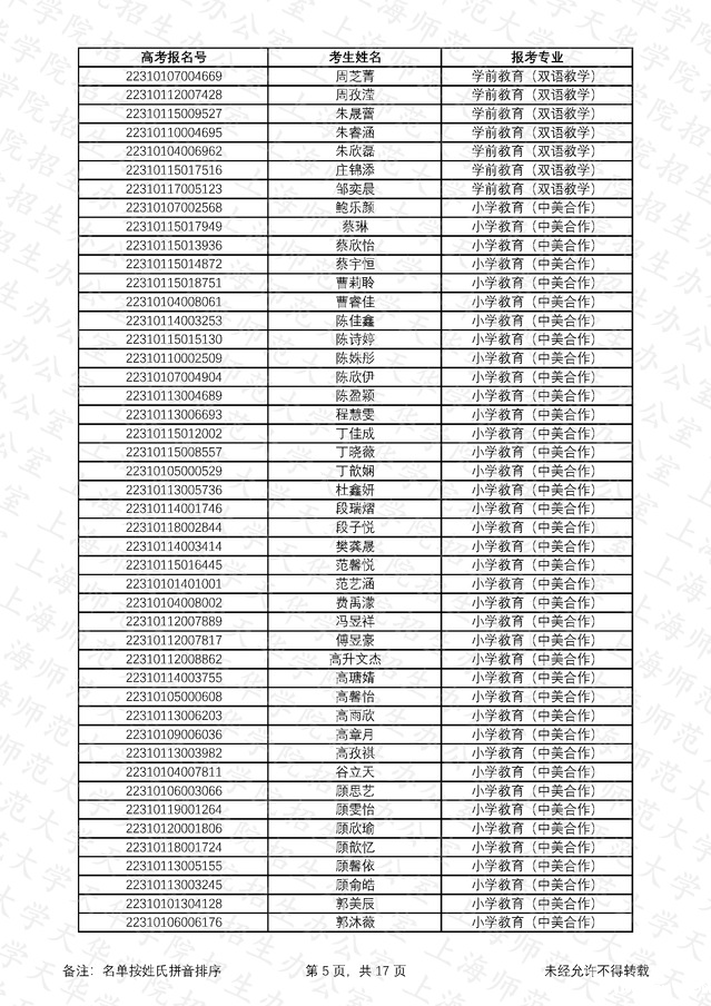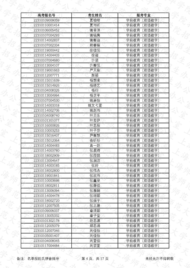 | 1 | 学前教育(双语教学) | ≥276分 | 考生名单见附件 |