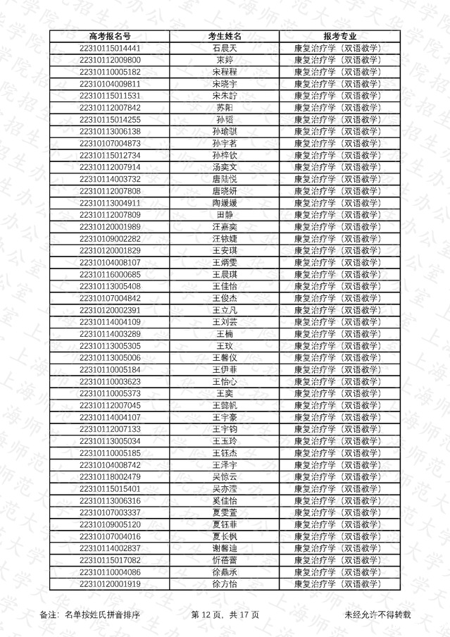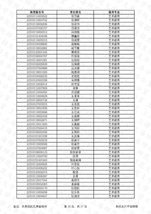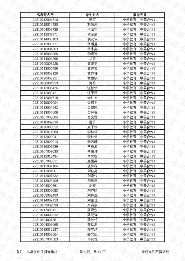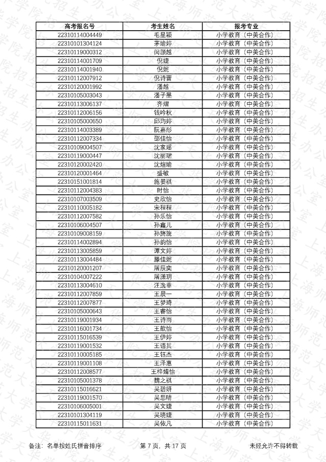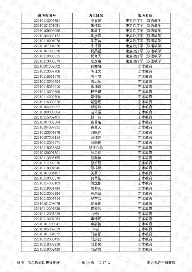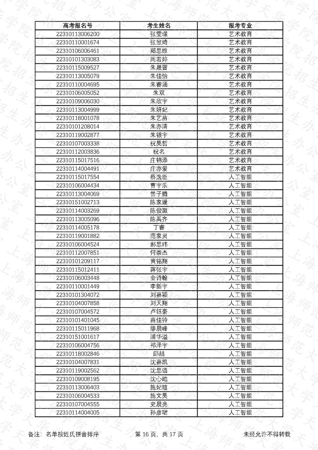 | 1 | 学前教育(双语教学) | ≥276分 | 考生名单见附件 |