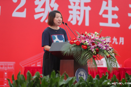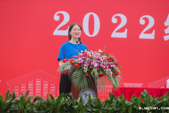 新生家长代表,2022级初等教育学院小学教育专业的姚佳怡母亲表示非常荣幸自己的孩子成为天华的一员。从报道前的温馨提示,报道日的红马甲志愿服务到报道后的入学教育,点点滴滴尽是天华的温暖与精致。“一代人有一代人的长征,一代人有一代人的担当。”她鼓励同学们在新的人生长征路上开拓进取,奋勇直前,行稳致远。