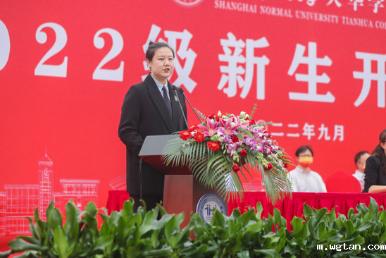教师代表,通识学院副院长聂晓晶老师结合新生居家学习经历以及如今的校园疫情常态化管理,提出“他律与自律、缺憾与潜能、小与大”三组概念,引得莘莘学子深思与慎取。“执念于我,烦恼自生,心怀世界,天地自宽。” 希望新生们传承天华精神,做新时代接续奋斗的天华人,以炽热初心践行青春之梦,并衷心祝愿新生们都能拥有一段完整、充实、美好的大学生活。