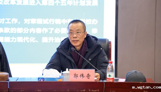 总校监郭伟奇从推进现代大学制度建设,完成章程文本修订工作;参与干部选聘工作,提高学校选人用人公信度;守护办学理念,推动全面提高人才培养质量;维护章程执行,保障决策程序运行规范;聚焦重要工作,助力各项工作落实见效等五个方面总结了监察委本学期工作的具体举措,反思了在发挥作用不够到位,监督检查抓手不实,监督检查不够深入细致等方面存在的问题,表达了要进一步提升监督治理的效能,促进学校各项事业取得更大的进步和发展的决心。