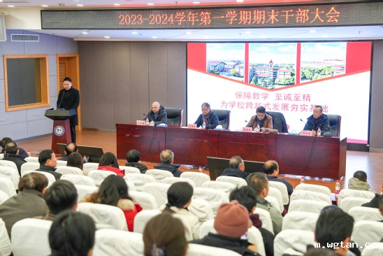 1月16日上午,学校在晖华楼报告厅召开2023-2024学年第二学期期末干部大会,总结各条线重点工作,交流分享经验成果。学校执行董事长石伟平、党委书记陆建非、校长叶才福、总校监郭伟奇出席会议,全体校务委员会成员、中层以上干部、二级学院正副院长、职能处室正副处长、党总支正副书记、专业主任以及助理级干部参加会议。会议由执行董事长石伟平主持。