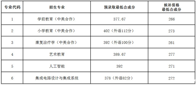 预录取及候补录取规则:同一专业志愿考生按合成分从高到低排序(总分相同则按外语成绩、语文成绩、数学成绩次序优先排序),按招生计划的100%公布预录取考生名单,其余为候补录取资格考生名单。