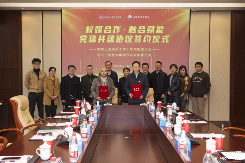 3月5日,中共上海师范大学天华学院委员会与中共上海教育电视台总支部委员会在上海师范大学天华学院正式签署《党建共建合作协议书》。上海市民办高校党工委副书记、办公室主任江鸿波,上海开放大学党委副书记、副校长、上海教育电视台台长孙向彤,上海教育电视台党总支书记、副台长顾大文,上海教育电视台艺术总监、专题部主任李宗强,上海教育电视台专题部党支部书记、副主任刘伊凝,上海师范大学天华学院党委书记高建华,上海师范大学天华学院校长叶才福,上海师范大学天华学院艺术设计学院院长赵牧,上海师范大学天华学院艺术设计学院常务副院长徐子卿,上海师范大学天华学院艺术设计学院副院长朱花,上海师范大学天华学院艺术设计学院影视摄影与制作专业主任张弛出席此次签约仪式。
