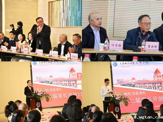 “天华师资队伍投入度高,教学目标达成度高,校园文化辨识度高,感谢天华对本次家长开放日精心周到的安排,让我此刻满满的幸福感”“花一天时间深入体验孩子在校一天的生活,亲眼见证他们的成长与变化,参与孩子的学习规划,不虚此行”“感谢天华让孩子找到了个人兴趣和发展方向,辅导员对学生用心用情的关爱和帮助让我们家长安心放心暖心”……上午10点图书馆四楼报告厅里气氛热烈,家长代表们纷纷点赞本次家长开放日的组织和安排。学校党委书记高建华、校长叶才福,党委副书记许岳、党委副书记兼学保处处长曹云林,国际交流处、教务处、学保处等职能处室领导及二级学院党总支书记们与家长以座谈会的形式进行了面对面交流。