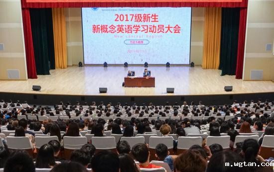 10月11日晚,我校在晖华楼大礼堂召开2017级新生新概念英语学习动员大会。外面秋意浓浓,礼堂内却春意盎然、济济一堂,学校邀请了语言文化学院指导教授万正方老师,为新生作“奋斗的青春最美丽——持之以恒学英语”的主题报告。校党委副书记、学保处处长曹云林,各二级学院党总支书记出席大会,全体大一新生辅导员、1580余名新生、80余名班助理参加了会议。报告会由学保处常务副处长刘天翔主持。