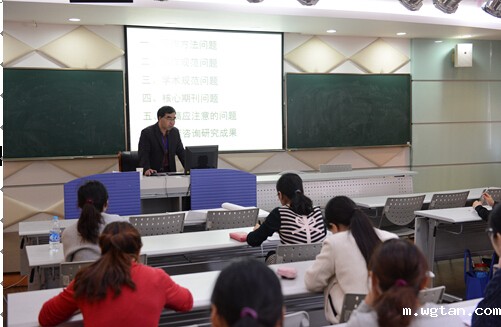 2015年11月6日下午,明华楼五楼演播中心如期举行“骨干教师科研能力高级研修班”第四次讲座,学校党委副书记、人事处处长许岳同志主持,上海师范大学科研处副处长公磊教授做《学术论文的撰写方法与规范》专题讲座,“骨干教师科研能力高级研修班”35名骨干教师出席了讲座。