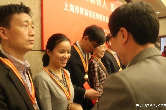 5月3日下午,由上海市教卫工作党委和上海市教委主办,上海市教育工会和上海市劳模协会承办的以“立德树人薪火相传”为主题的教育系统劳模和优秀教师座谈会暨先进表彰会在上海交通大学医学院懿德楼隆重举行。本次表彰中,上海教育系统共有10家单位被授予全国和上海市五一劳动奖状称号、27名同志被授予全国和上海市五一劳动奖章称号、7个班组(团队)被授予全国和上海市工人先锋号称号。我校语言文化学院院长助理黄蔚老师摘得上海市“五一劳动奖章”。