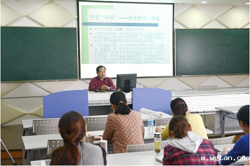 许岳在专题讲座上向各位骨干教师下发了“骨干教师科研能力高级研修班”具体方案,督促大家着手准备科研论文的写作与相关项目的申报,希望大家能够在此次培训上有所收获,获得相关科研论文的发表与项目的成功申请。