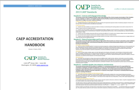 所提到的这些相关标准,InTASC标准主要针对新入职教师,NBPTS标准主要针对职后教师发展;而参与到CAEP认证中来的17个专业协会(SPA),更是教师教育专门领域(如学前教育、中等教育、天才儿童教育、教育领导力、教育技术、学校图书馆、健康教育及各学科教育等)的权威、专业化认证机构。CAEP让自己的认证标准与这些有影响力的国家、州际和细分专业领域现行标准保持一致,一方面体现了从教师培养到新教师入职,再到优秀教师职业发展,其培养标准是顺畅衔接的,另一方面把行业细分专业领域认证机构的智慧和专长也吸收到了自己的认证过程之中,为我所用(在认证过程的主要特点里还会进一步阐述)。
