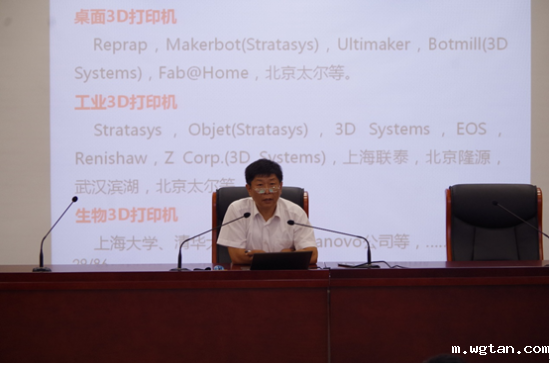 了解完3D打印的基本概念,胡教授又详细地介绍了3D打印技术的发展史以及几家知名的3D打印公司。如今,3D打印技术已在设备、工艺和材料等方面取得了长足的进步,在研究,工程和教学等领域都占据了独特的地位。尤其值得一提的是,3D打印开辟了不用刀具制作零件的途径,为传统方法不能或难于制造的零件提供了一种全新的制造手段。
