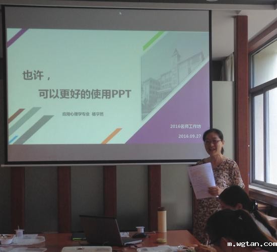 2016年9月27日中午11:30---12:30分,教师发展中心举行本学期首期“名师工作坊”,活动采用午餐会形式。教学名师杨宇然老师担任此次活动的主讲教师,与大家分享了《教学过程中PPT的设计应用》。人事处常务副处长曹卫老师主持,20名新教师积极参加了此次活动。