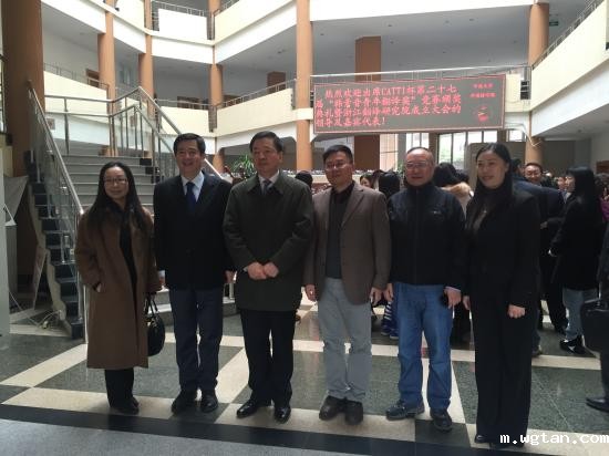 (中国外文局领导与我校万正方教授合影)