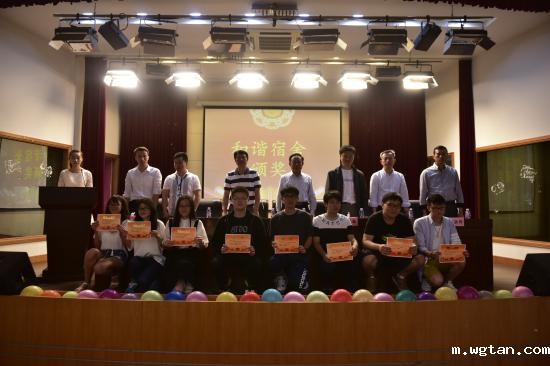 随后,周烨刚老师宣布了2015-2016学年第二学期“和谐宿舍”获奖名单,此次评选共得出金奖6间,银奖36间,铜奖153间。随着令人振奋的音乐声响起,各获奖的宿舍代表依次有序地走上讲台,接受领导老师颁发的奖状并合影留念。