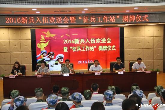 2016年9月20日下午13时,我校武装部在晖华楼小剧场隆重举行2016年新兵入伍欢送会暨征兵工作站揭牌仪式,嘉定区征兵办主任、区武装部部长于森鹤,校党委副书记、学保处处长、武装部部长曹云林,学校教务处副处长王慧,学保处副处长、校团委书记包静波,资助中心主任李婉璐及各二级学院党总支正副书记以及相关班级正副辅导员、部分家长出席了会议。会议由学保处副处长刘洪伟主持。