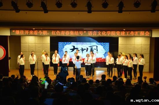 2015年12月15日下午5时,由语言文化学院党总支主办、党建中心承办的“继往开来看今朝,红色青春集结号”党建工作汇报会在晖华楼小剧场隆重举行。校党委书记韩晓玉,校监、语言文化学院院长史文,党委宣传部长齐砚奎,学保处常务副处长刘天翔,学保处副处长包静波,语言文化学院副院长胡雅楠,语言文化学院党总支书记孙超,副书记杨央、刘庆奇,管理学院党总支副书记钟建生,健康学院党总支书记蔡勇永,副书记周建光,以及各二级学院的老师们莅临了本次活动现场。