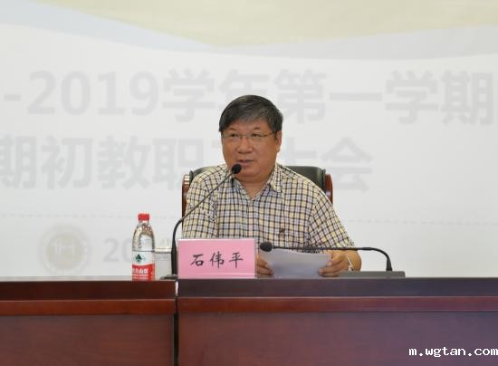 2018年8月31日上午9点,我校2018-2019学年第一学期期初教职工大会在晖华楼报告厅隆重举行。执行董事长石伟平、党委书记陆建非、校长叶才福、总校监郭伟奇、顾问韩晓玉在主席台就座,校务委员会全体领导以及学校全体教职员工出席了会议。会议由执行董事长石伟平主持。