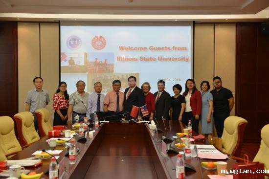 2018年9月25日,美国伊利诺伊州大学的校长Larry Dietz携夫人、分管教学副校长Jonathan Rosenthal,国际生录取中心执行主任Yimin Wang应邀来访我校,并共同举办两校视觉传达设计专业合作项目2018级学生开学典礼。