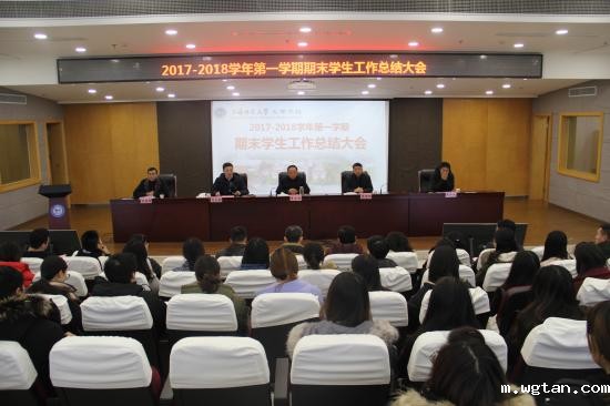 1月16日上午9:00,学保处在晖华楼报告厅隆重召开2017-2018学年第一学期学生工作总结大会。校党委副书记兼学保处处长曹云林、校监兼学保处副处长周烨刚、学保处常务副处长刘天翔、校团委书记兼学保处副处长包静波、学保处副处长刘洪伟,以及各二级学院党总支书记,全体正副辅导员们参加了本次会议,大家齐聚一堂,回顾学期重点工作,总结经验,展望未来。会议由学保处常务副处长刘天翔主持。