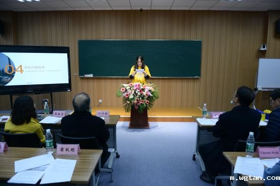 2017级财务管理(CFA方向)班班长高伊纯的英语发言向校领导们汇报了同学们从入校前对未来规划的迷茫到在学校慢慢感受到校友之情,师生之情并建立起初步职业规划的心路历程。同时,她还代表全体学生表达了刻苦学习专业知识,全面提高自身综合素质,未来报答学校,报效祖国的坚定信心。