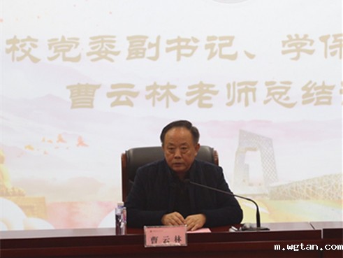最后,校党委副书记、学保处处长曹云林老师总结发言。他对班助理团队的全体同学所取得的成绩和做出的努力表示感谢,对获得荣誉的先进个人与集体表示祝贺。希望他们在接下来的道路上再接再厉,不忘初心,牢记使命;继续秉持严于律己的品德、自信自强的性格、优秀的团结意识,将这些融于其身,团结一心,共创天华学生管理工作的新境界!