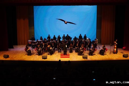 用青春拥抱时代,用生命点燃未来,由天华学院交响管乐团演奏的共青团团歌“光荣啊,共青团”正式拉开了交响管乐团的演奏序曲。