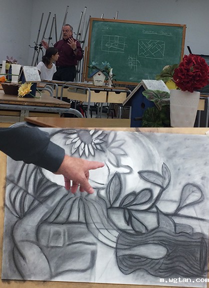 视觉艺术学院教学团队形成以经验丰富的教授副教授为主、充满活力的年轻助理教授为辅的教学梯队,师生比例为1:10,实行小班化教学,一个班级人数最多为12人,最少为6人。因此,教授在班级上有足够多的教学时间一对一辅导每位学生,学生有足够多的机会与教授面对面交流。通过观察,教学质量比较高,学生很受激励,成绩效果显而易见。比如Drawing Fundemental (绘画基础)课程,Crowley教授有超过40年的绘画教学经验,他非常注重学术的抽象思维。在课堂中注重启发性的、创造性的教学,训练学生的创造性思维,充分利用多种绘画媒体、技法、工具等,分析图形美学,解构和重构图形的创作能力,并善于从绘画史的角度出发,把历届大师的作品分析透彻并提炼出教学方法,一对一辅导,哪怕是没有绘画基础的学生,也能从0到1,从无到有,逐渐寻找到美感与技能并重的创意手法,这为今后的图形设计的创作方法作了极好的铺垫。