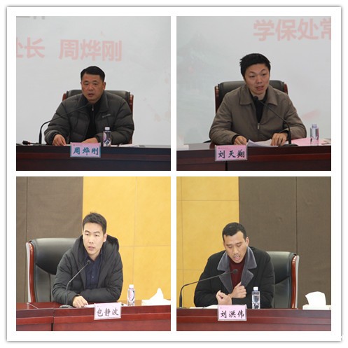 随后,学保处各条线分管领导周烨刚、刘天翔、包静波、刘洪伟分别就新学期的宿舍管理工作、学生管理工作、共青团工作、安全保卫工作进行了详细的部署和安排。