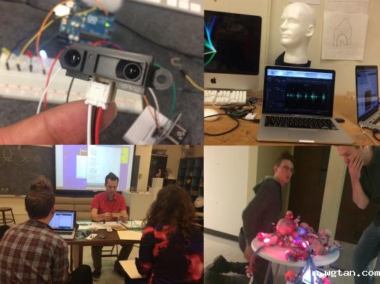 Expanded Media课程,是技术和艺术完美结合的课程,课程中Frank Brian教授教会大家设计图形标准,并在雕刻工作室进行二维雕刻和三维打印,完成从概念设计到产品生产的全部过程,并将作品在学院展览馆进行展出。在后半学期,Brian教授更是教大家编写程序,使用微处理器和感应器设计制作一件交互装置作品-这正是人工智能和机器人设计的核心技能。教授要求大家出30个方案草稿,并绘制出来,然后选择其中5个进行全班论证。他并不急于要求大家把创作做成一件可见的或实用的产品,而是希望在创造理念上进行创新和提升,让装置艺术有更多的可能性,他引导大家将话题进行深入讨论,在意识形态上进行挖掘,围绕一个话题甚至可以讨论一节课。