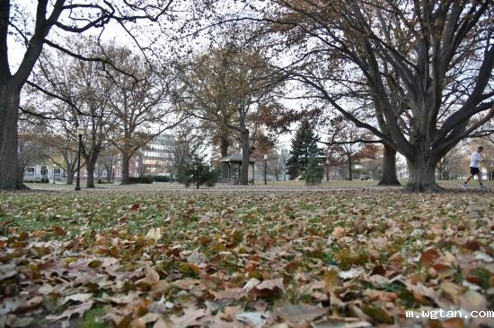 12月,伊利诺伊州立大学(ISU)校园中心Qruad,由枝繁叶茂变成满地金黄,小松鼠欢快地在地上进食,完全不忌惮行人路过,吃饱了不忘搬运一些回树洞准备过冬。有着100多年年龄的栗子树和核桃树,成了他们安全、舒服的家。室外已经接零度,曾经嬉笑热闹的草地,变得有些冷清,同学们都忙于最后的presentation大作业,为了争取拿个好分数,也收敛了起了平时的玩乐。偶尔也能看到几个穿着短衣裤的大学生从大树底下匆匆走过,走到教学楼边一闪,就躲进空调房里了。