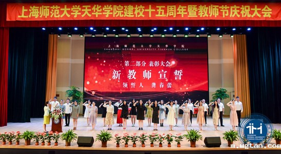 健康学院杨宇然老师作为师德标兵代表发言,回忆了天华建校初期的艰苦情景与发展过程中的不变与改变,探讨了未来要做一名怎样的老师。新教师代表韩笑天也表达了作为新手教师将严谨治学、上下求索、注重创新发展的决心。伴随着新教师们铿锵有力的宣誓,庆祝大会也完美落幕。衷心祝愿所有教职员工节日快乐,也祝愿天华的明天更加美好。